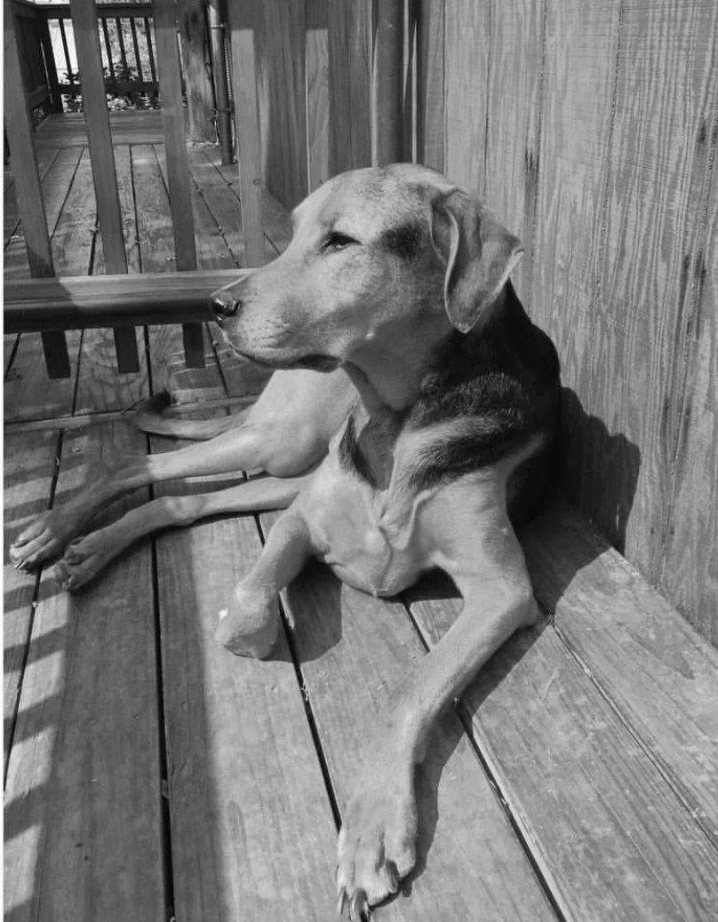 A one-of-a-kind mutt with the attitude of royalty and the size to back it up, Lady was 101 pounds of love, sass, and stubborn charm. She wasn’t the most social pup, cranky at times, a little rough around the edges, and more than happy to steal the younger dogs’ toys just to sit on them out of spite. But beneath that tough exterior was a heart of gold.